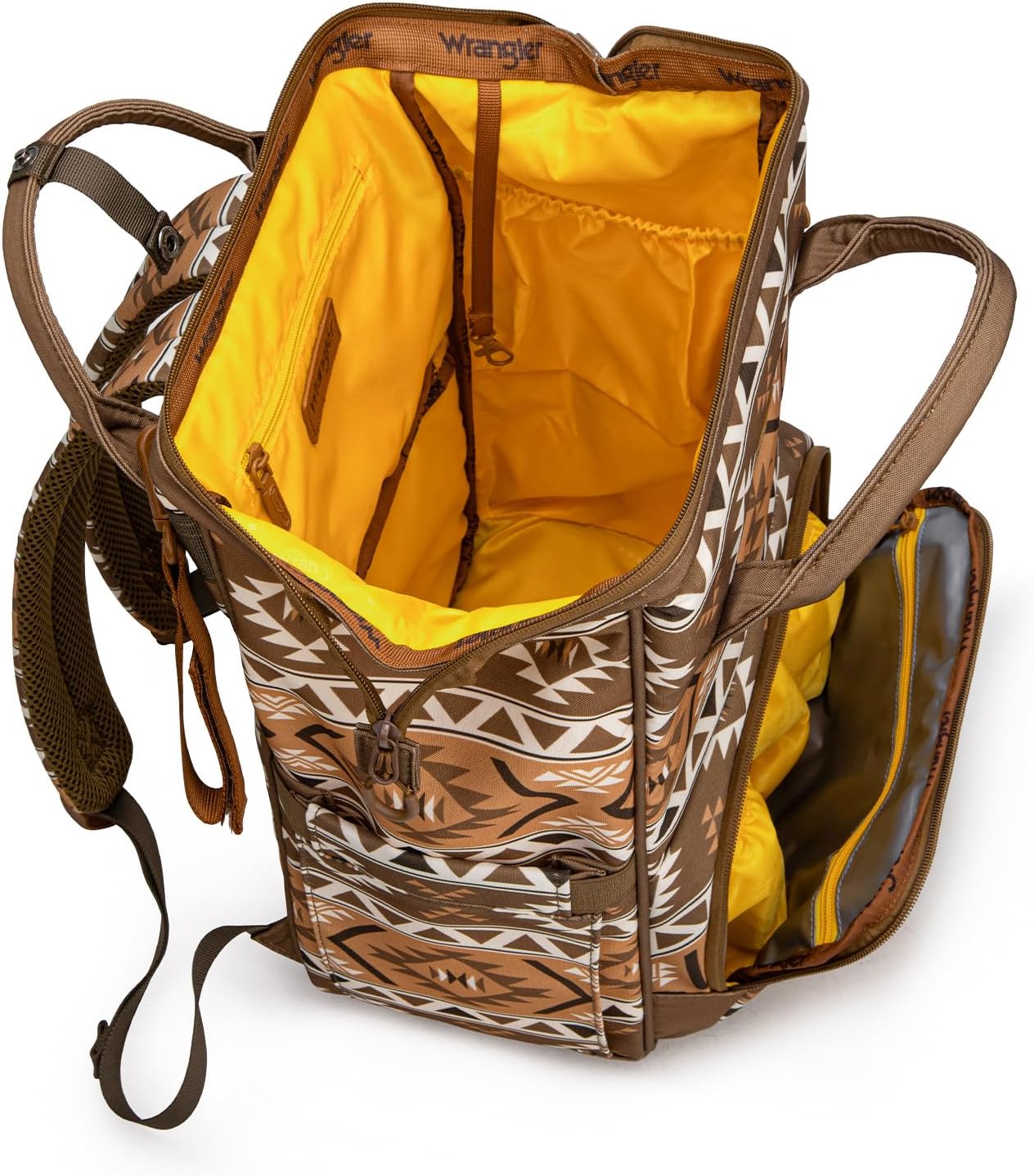 Wrangler Aztec Backpack Multifunction Baby Travel Bag with Changing Pad, Stroller Straps and Pacifier Case WG2204-91103BR
