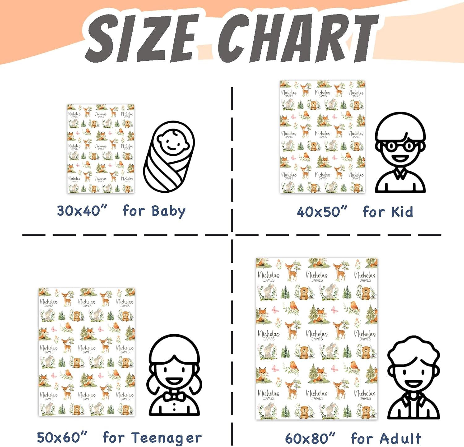 - 【Multiple Sizes】Our personalized throw blanket is available in four sizes, 30''x40'', 40''x50'', 50''x60'' and 60''x80'', making it suitable for babies, kids, teens, adults and even pets. Use the small size as a changing blanket or crib throw, and the larger sizes for snuggling on the sofa or bed with family and friends.