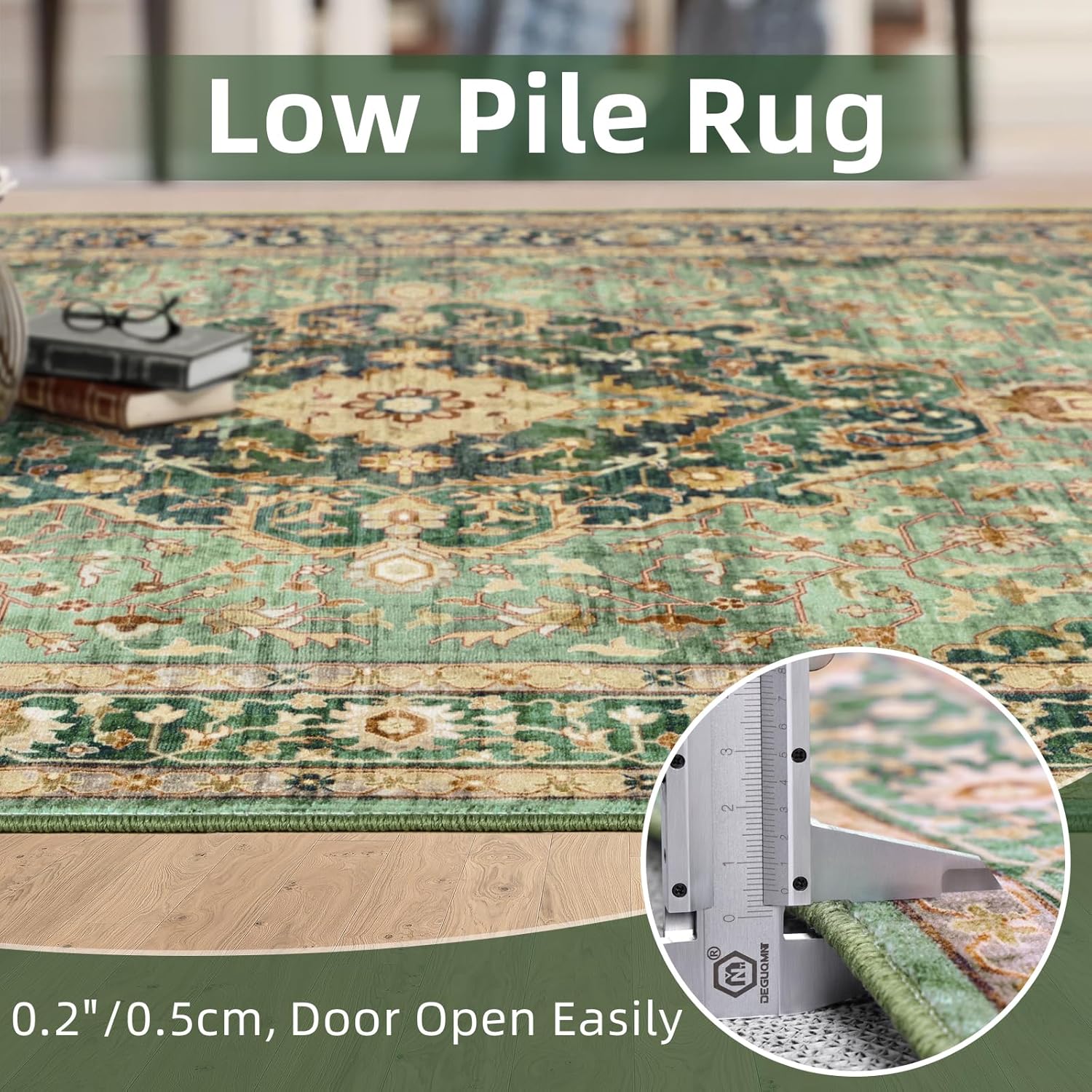 10x12 Green Rugs for Living Room Bedroom, Washable Area Rugs Non Slip Large Rug for Dining Room Office, Floor Decoration Vintage Boho Big Rug Carpet Low-Pile Kid & Pet Friendly
