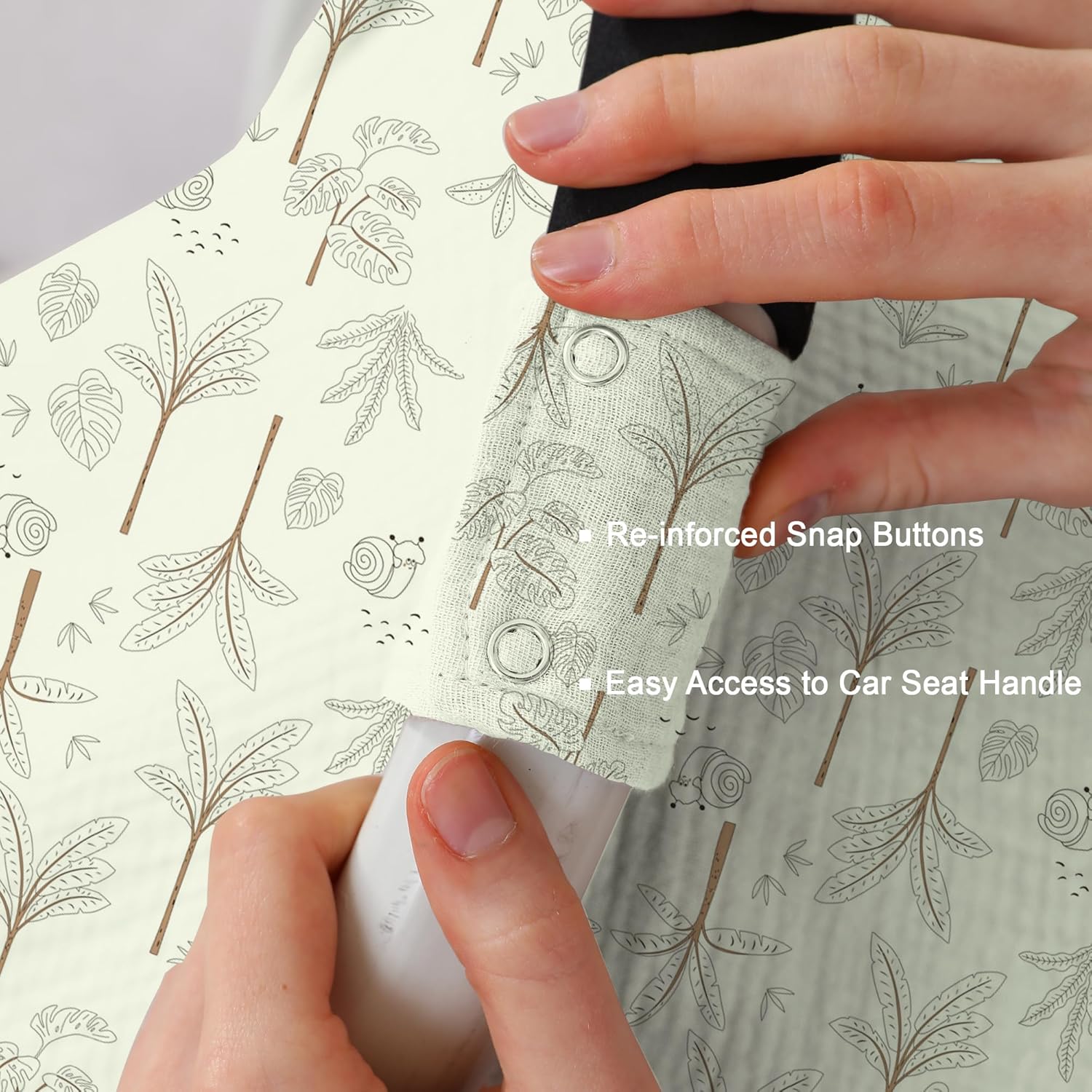 100% Muslin Cotton Car Seat Cover Baby, Carseat Canopy Cover, Universal Fit Stroller Covers for Boys and Girls (Coconut Grove)