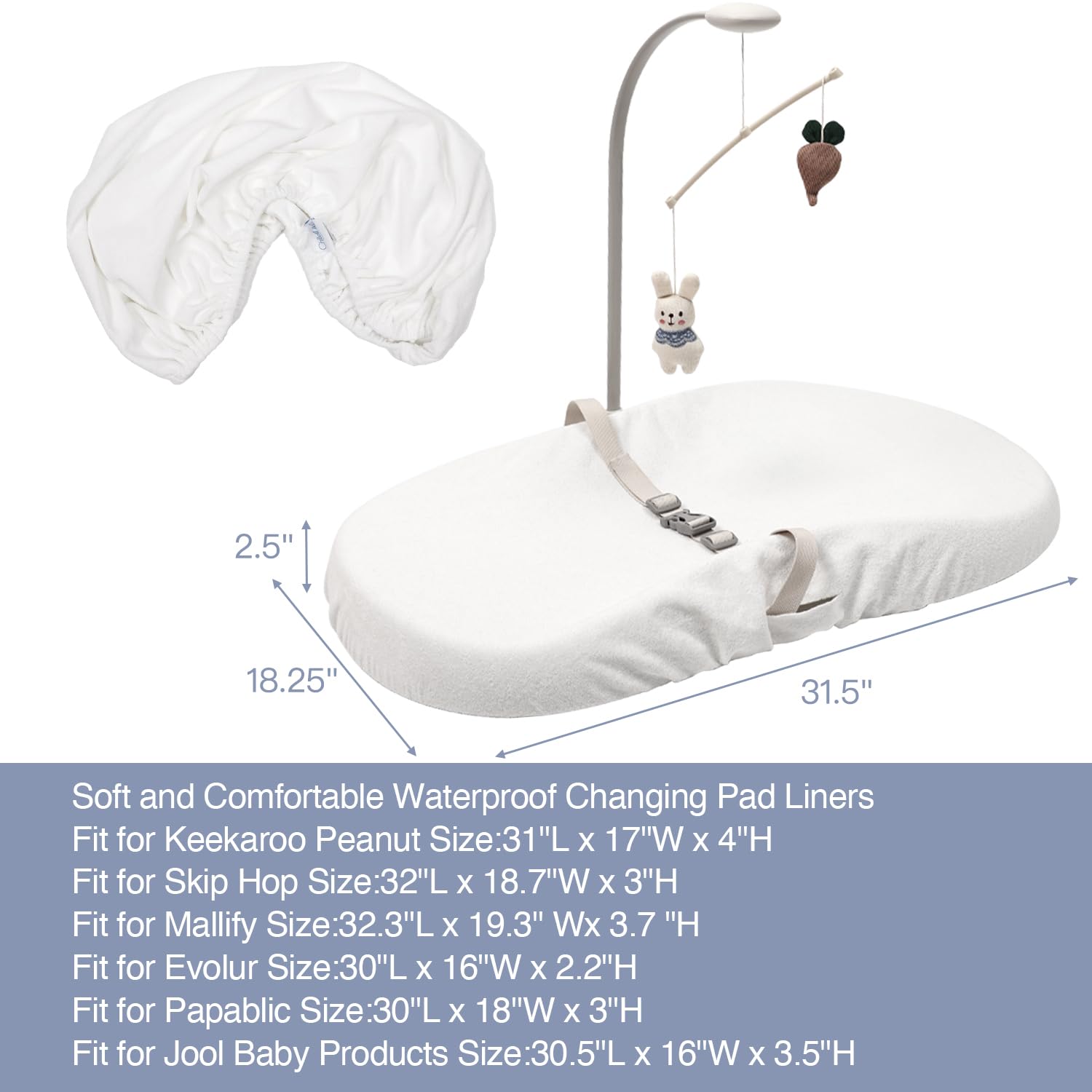 - Universal Fit for Popular Brands – Designed to securely fit 16”x35"contoured changing pads like Skip Hop,Keekaroo Peanut, and Evolur Eva.Elastic edges and buckle-friendly holes keep the cover snugly in place during active baby moments.Say goodbye to slipping covers during diaper changes