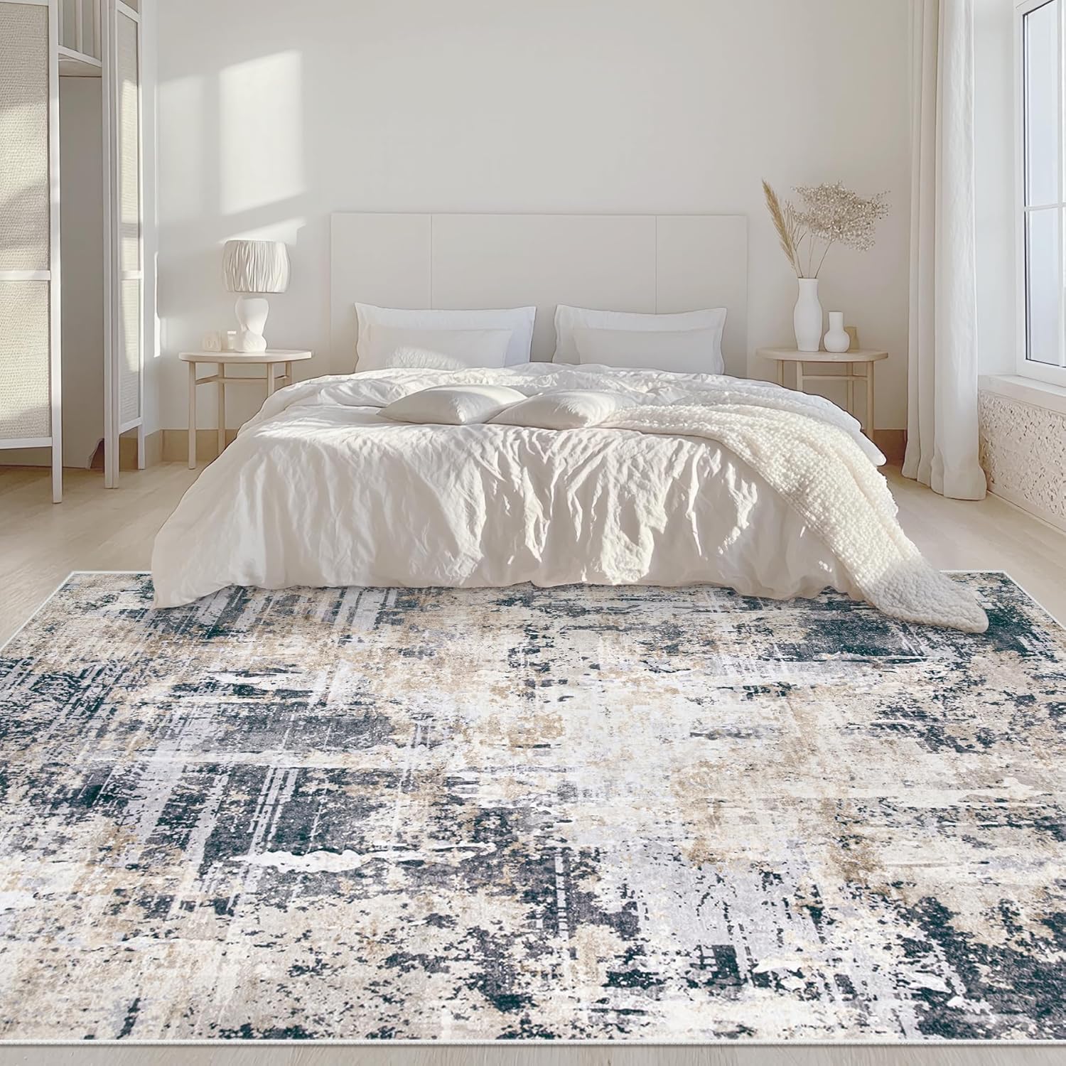 - Modern Abstract Rug: Simple color with soft stripe design, our living room rug has a modern look with a distressed feel; And 6x9 rug perfect for living room, bedroom, dining room, kitchen, children's room, office, laundry room, dorm.