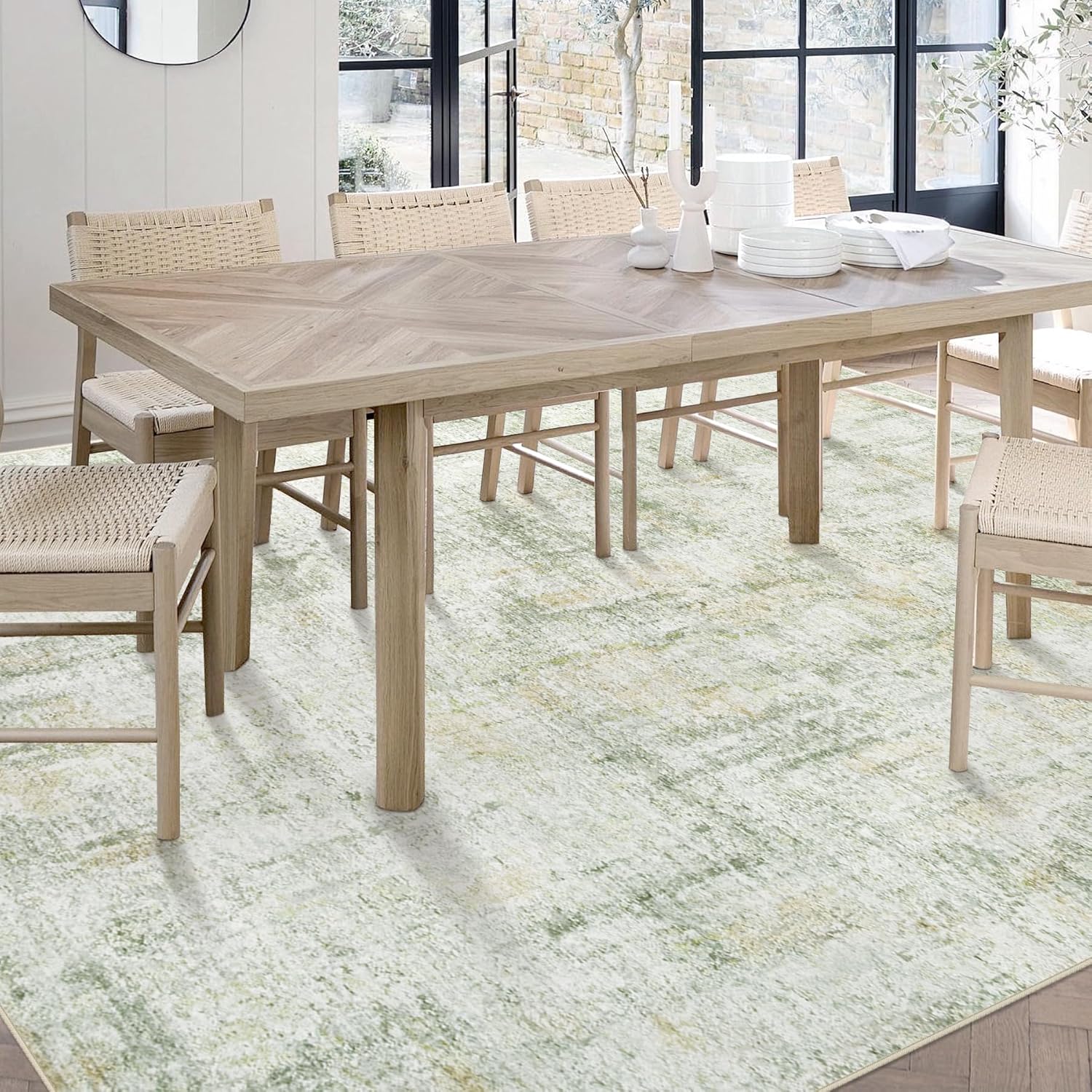 Area Rugs 6x9 Living Room: Washable Rug Modern Abstract Large Rugs Soft Non Slip Neutral Rug Stain Resistant Indoor Carpet for Bedroom Kitchen Dining Room Nursery Home Office Rugs(Green Brown,6'x9')