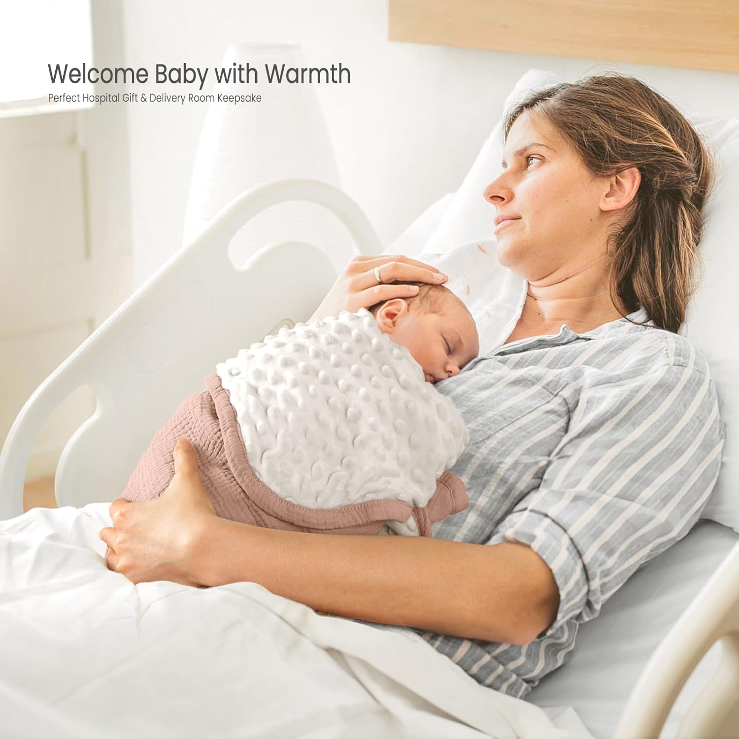 - Lightweight Dual-Fabric Design: Muslin & Minky Dot - Features a breathable muslin front and a warm minky fleece back. The lightweight, double-layer construction balances airflow and thermal retention, ideal for naps or daily cuddling.