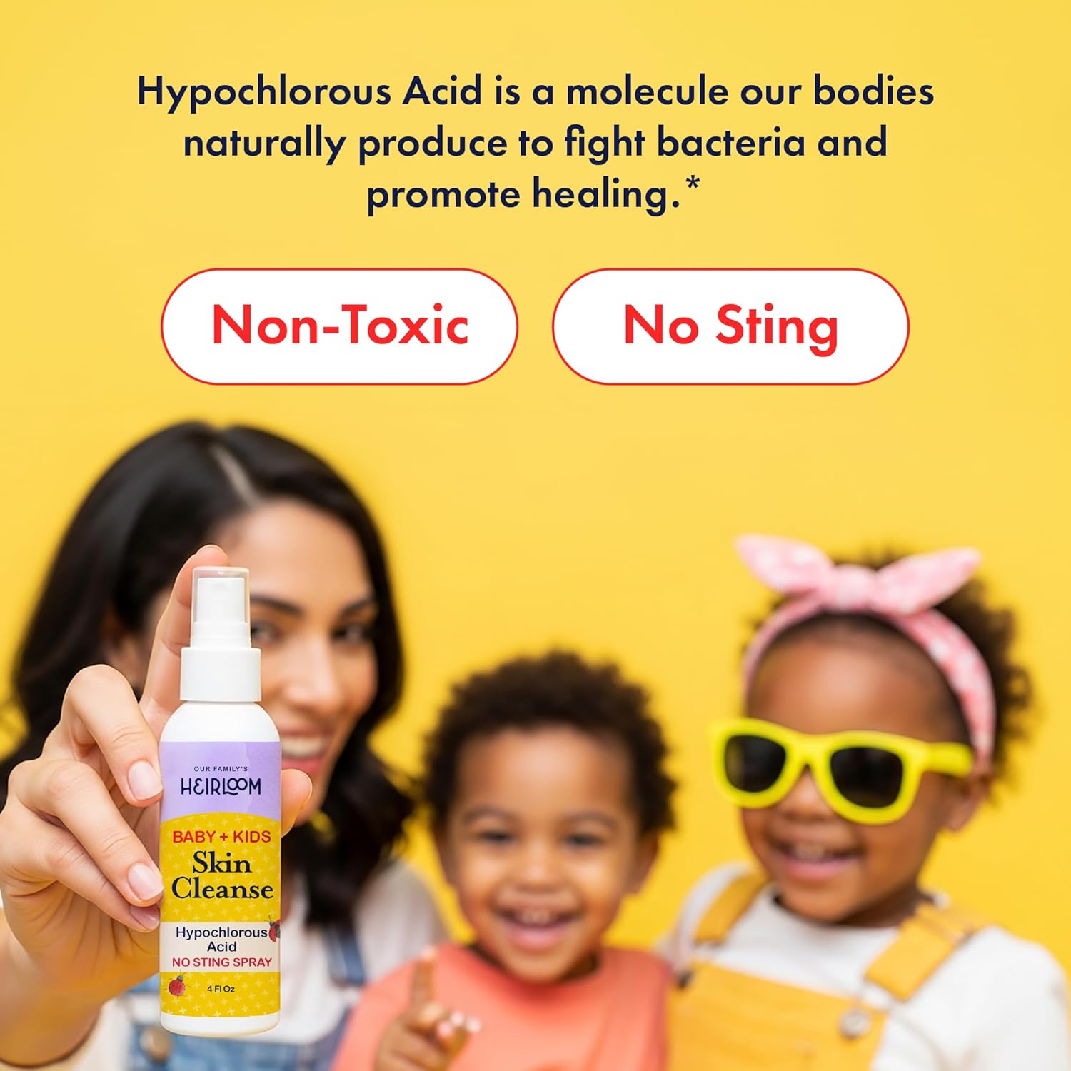 Hypochlorous Acid Spray for Kids - Gentle Skin Cleansing HOCL for Diaper Rash, Sensitive Skin, Sunburn, and Irritated Skin - No Sting, Non-Toxic, Kid-Friendly, 4 oz Spray