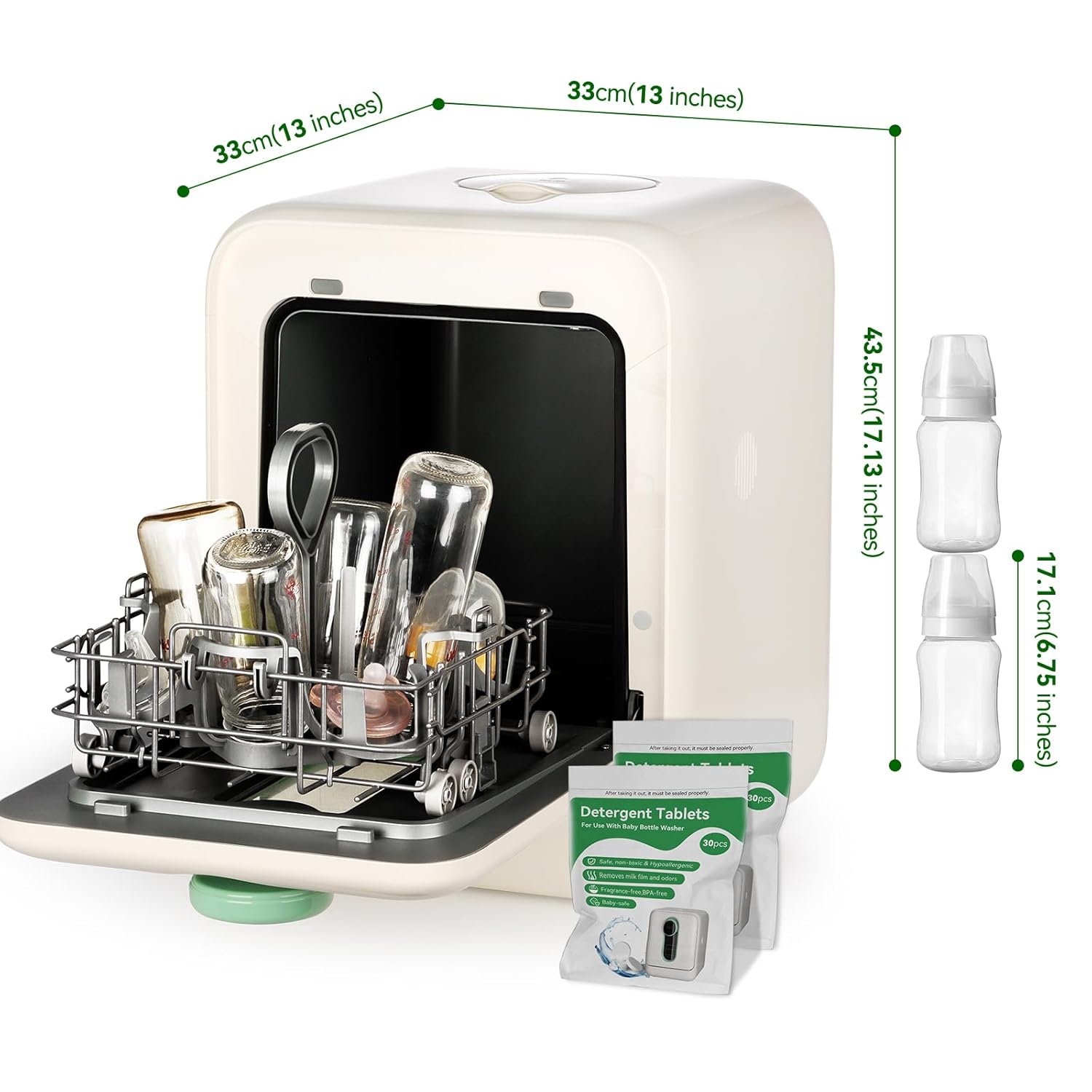 - Secure & Guaranteed: Each baby bottle washer comes with a 1-year warranty and includes 60 Universal across all brands bottle washer detergent tablets.