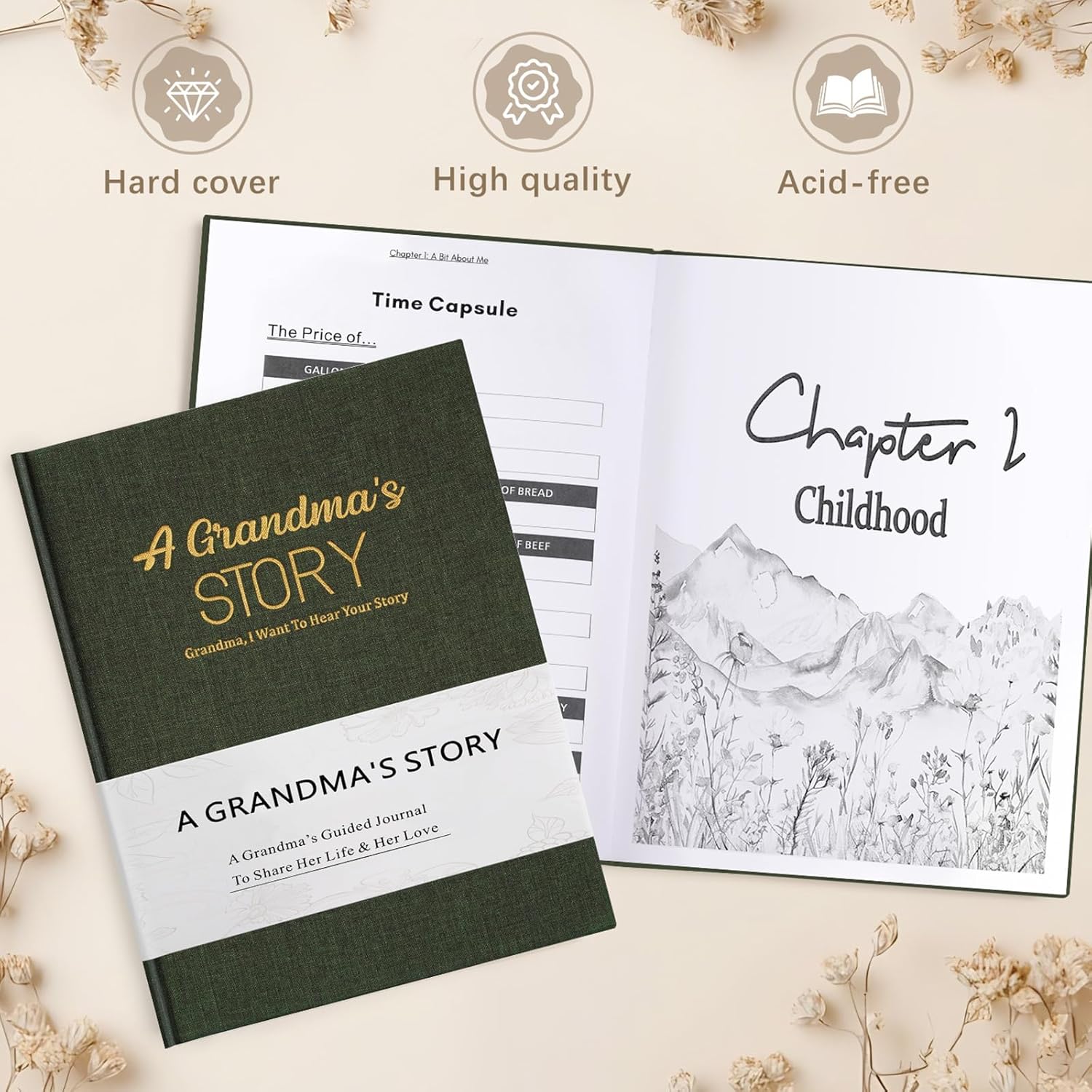 - Premium design to preserve precious memories: crafted with a luxurious linen cover and elegant gold front, this grandma journal is not only visually stunning but also built to last, ensuring it becomes a timeless family heirloom.