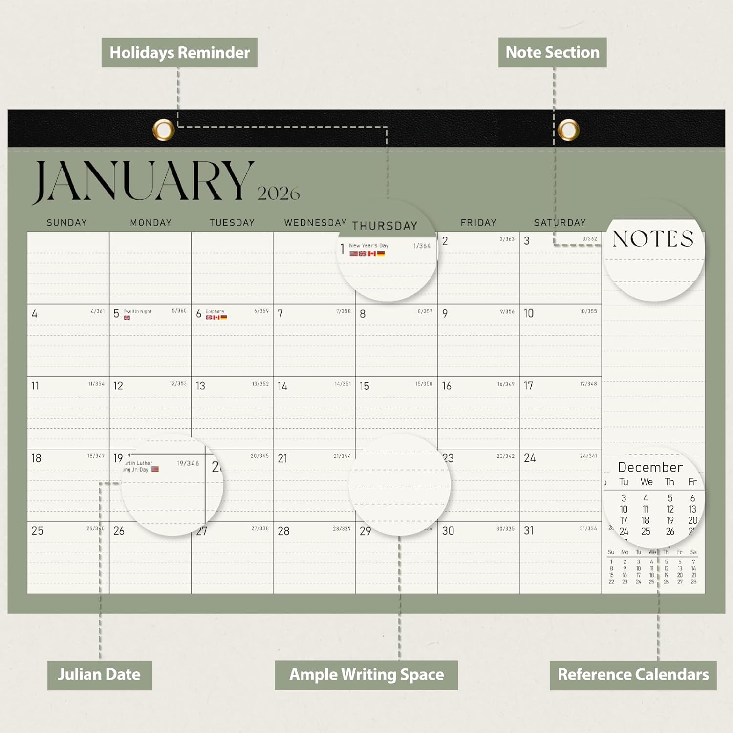 - [FUNCTIONAL & CUSTOMIZABLE] – This large 2026 calendar (17"x12") features 18 monthly calendar pages. Each page includes ruled daily blocks, a notes section, and a full-year overview. It also comes with 3 calendar sticker sheets for easy customization and organization.