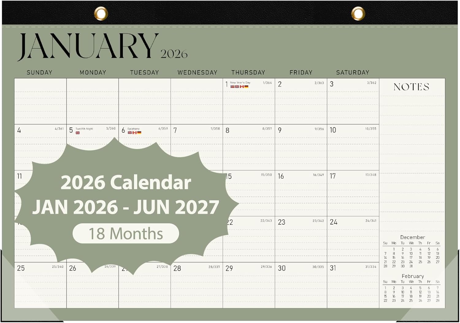 2026 Desk Calendar, Large Desktop/Wall Monthly Calendar (Jan. 2026 - Jun. 2027) 17'' x 12'' School Year Desk Planner for Teacher Family Office Supplies