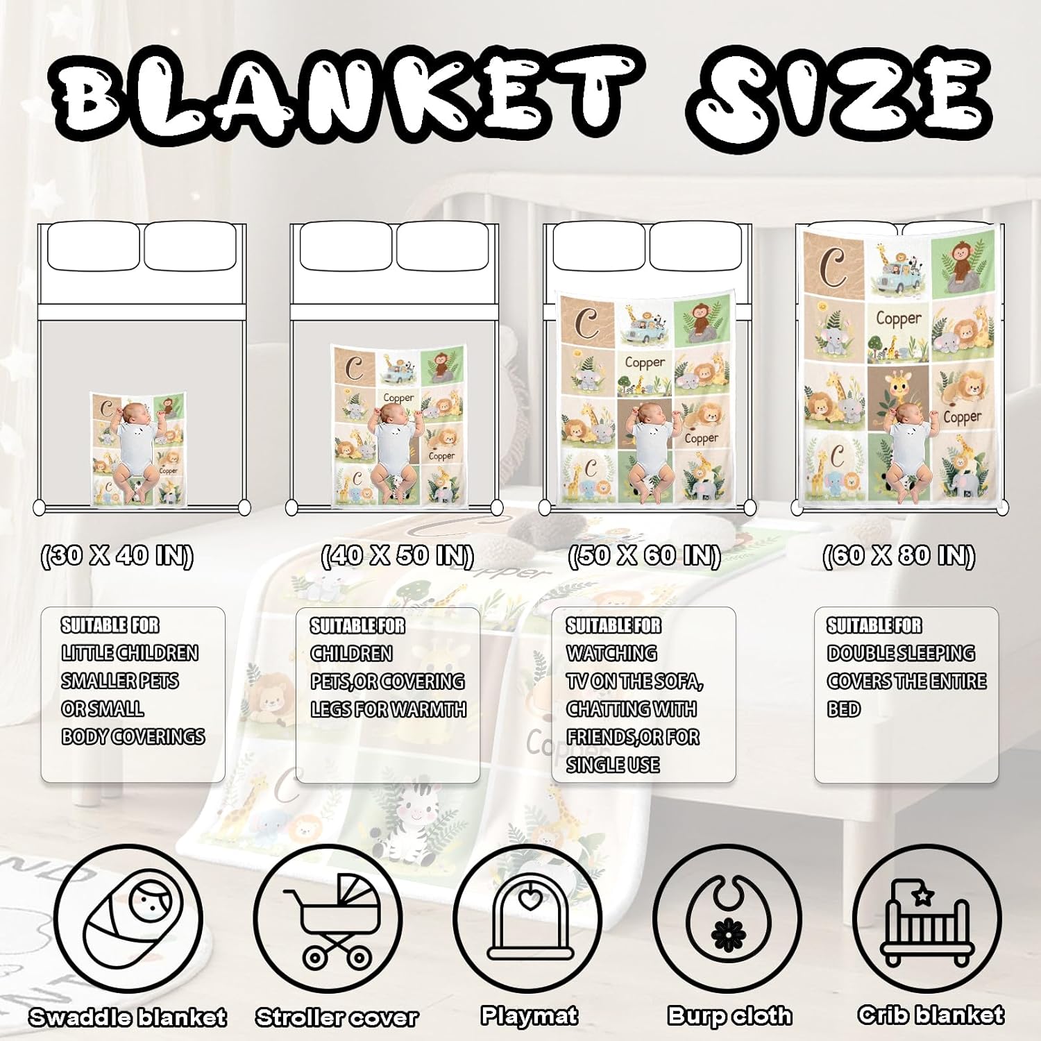 - Multiple Sizes for Every Stage of Babyhood -- From cribs to car seats, choose the perfect size: 30×40" , 40×50" , 50×60", or 60×80". Whether used at home, during naps, or on the go, our baby blankets for boys and girls offer comfort wherever they’re needed. It’s versatile, functional, and fits into every parenting routine or nursery setup.