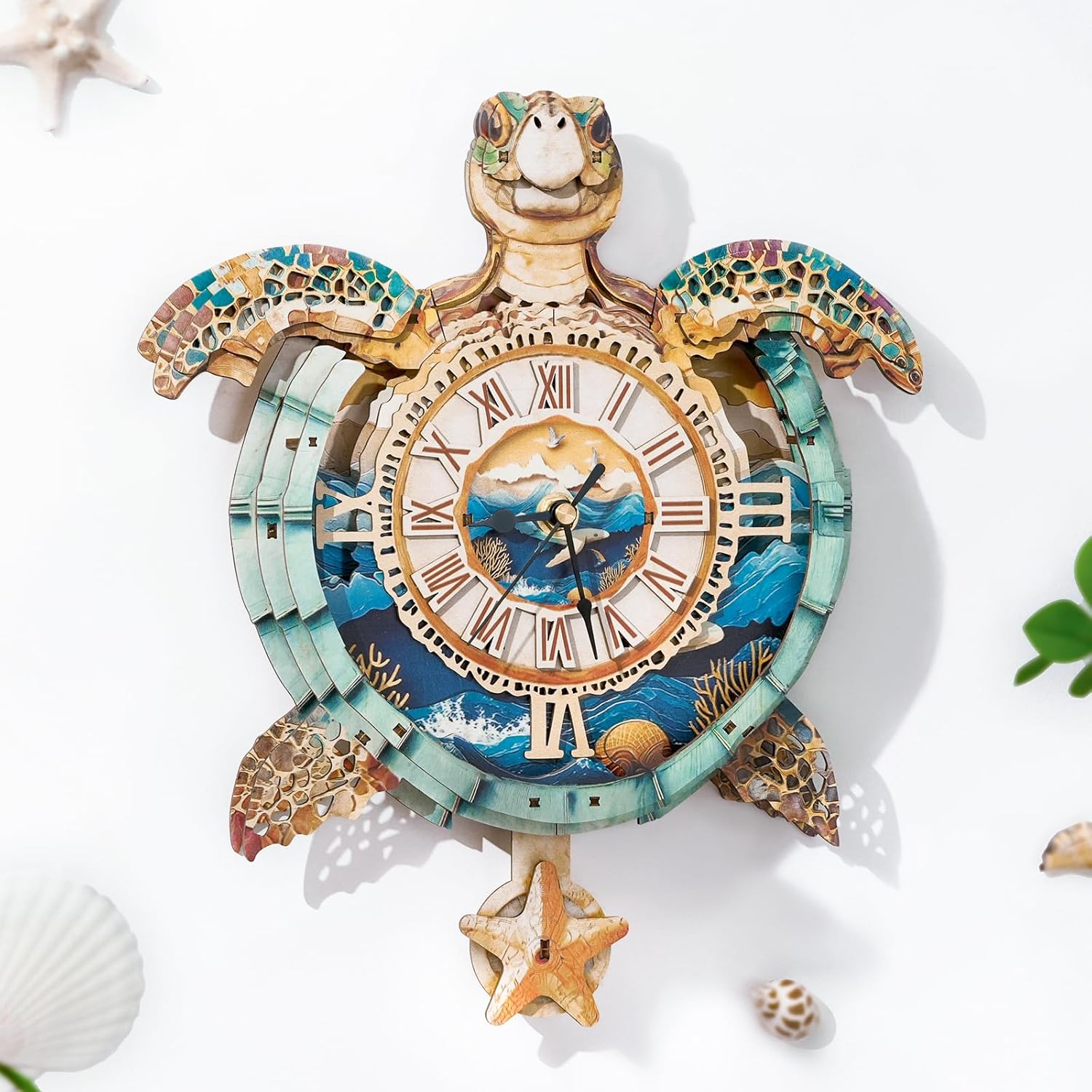 - 【3D Puzzles for Adults】Build a stunning mechanical clock with this intricately designed DIY clock kit, featuring a three-dimensional turtle motif and roman numeral dial. Perfect for hobbyists seeking challenging 3D puzzles that combine artistry with engineering.