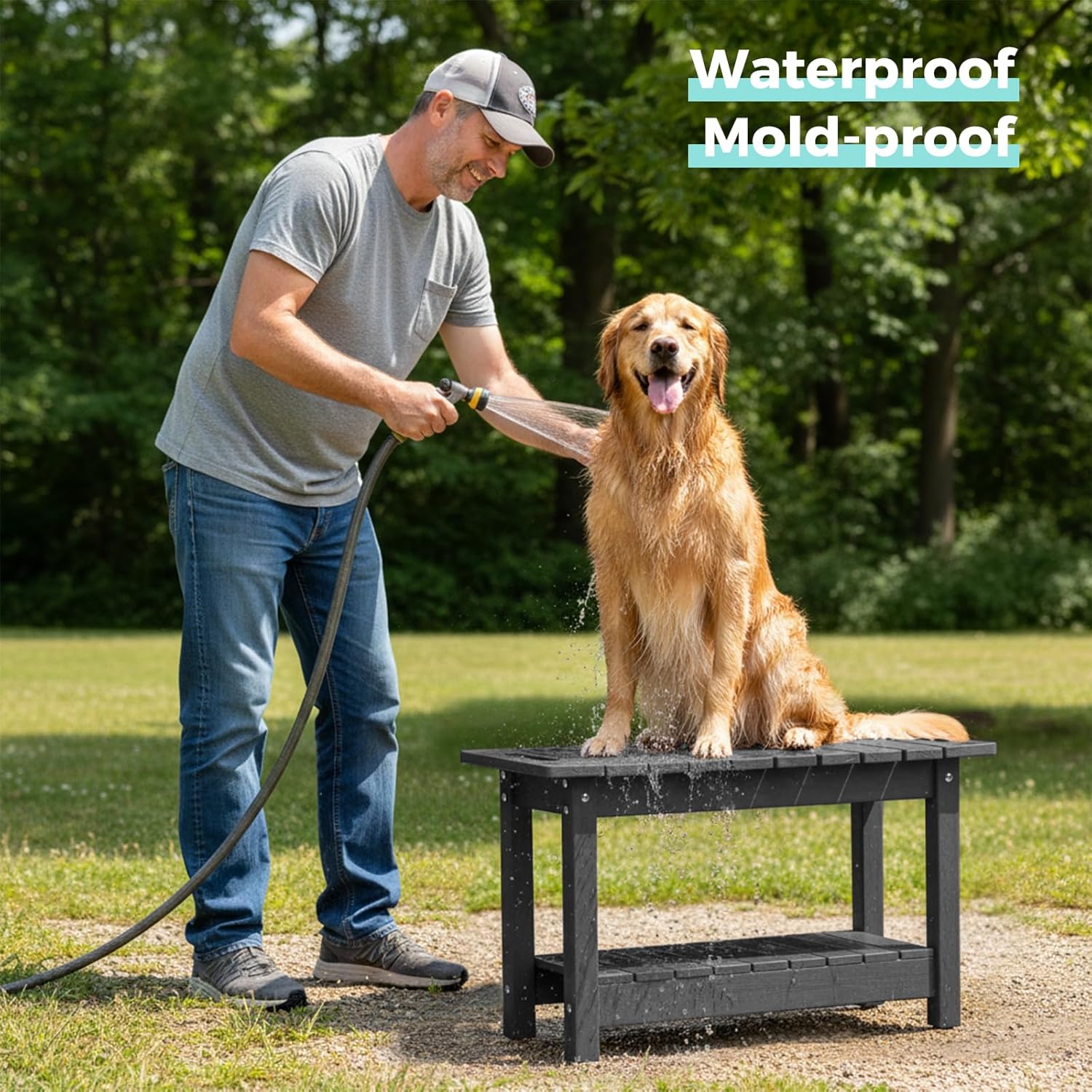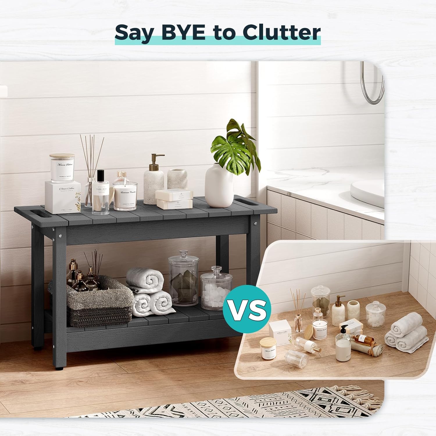 - ă100% Waterproofă The shower bench is made of HIPS (poly lumber), with 304 stainless screws, which is highly water proof, never rot and moldy. Easy to clean, just wipe it with a towel.